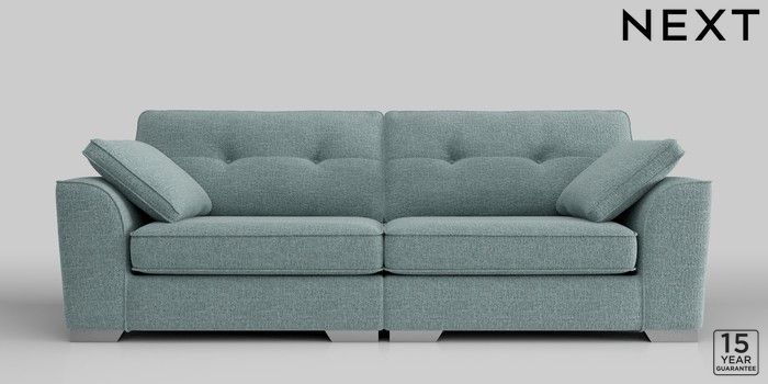 6.11.8 Buy Stamford Buttoned Back 4 Seater Sofa Chunky Chenille Light Teal Green Large Square Angle - Chrome Metal from the Next UK online shop Click here to use our accessible website