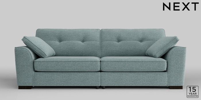 6.11.8 Buy Stamford Buttoned Back 4 Seater Sofa Chunky Chenille Light Teal Green Large Square Angle - Dark from the Next UK online shop Click here to use our accessible website