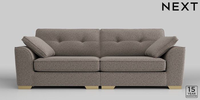 6.11.4 Buy Stamford Buttoned Back 4 Seater Sofa Chunky Chenille Mink Brown Large Square Angle - Brushed Brass from the Next UK online shop Click here to use our accessible website