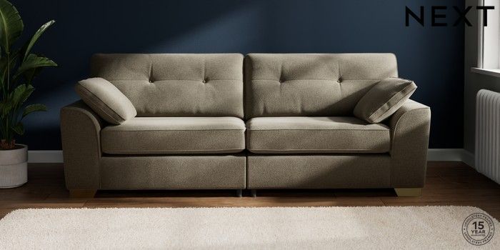 7.2.10 Buy Stamford Buttoned Back 4 Seater Sofa Chunky Marl Light Olive Green Large Square Angle - Brushed Brass from the Next UK online shop Click here to use our accessible website