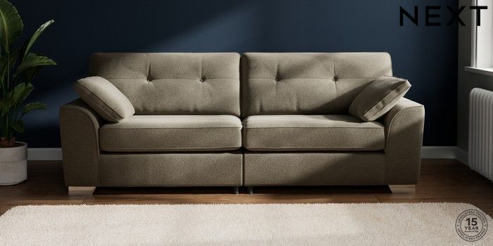7.2.10 Buy Stamford Buttoned Back 4 Seater Sofa Chunky Marl Light Olive Green Large Square Angle - Chrome Metal from the Next UK online shop Click here to use our accessible website