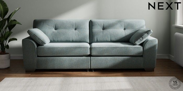 7.2.6 Buy Stamford Buttoned Back 4 Seater Sofa Chunky Marl Mid Blue Large Square Angle - Gunmetal from the Next UK online shop Click here to use our accessible website