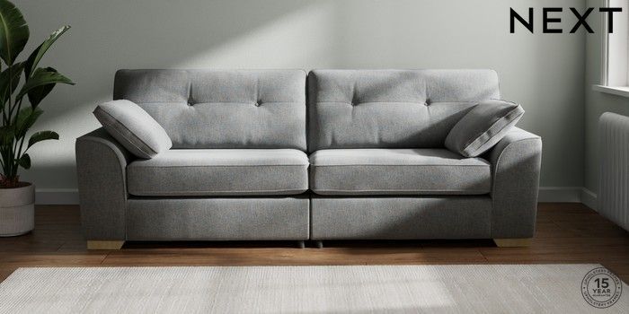 7.2.10 Buy Stamford Buttoned Back 4 Seater Sofa Chunky Marl Mid Grey Large Square Angle - Light from the Next UK online shop Click here to use our accessible website