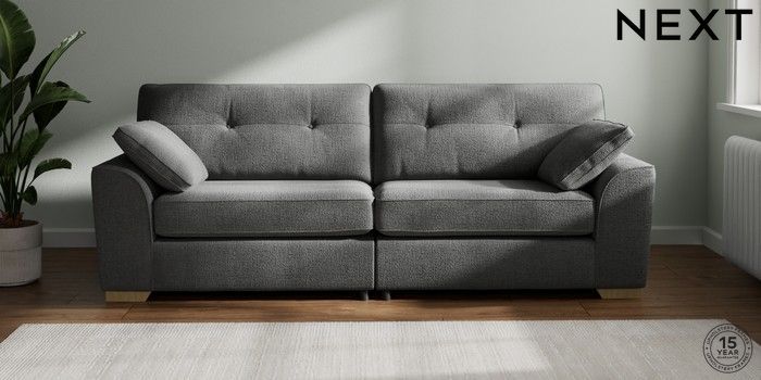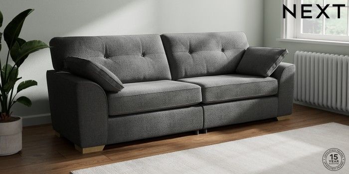 7.2.10 Buy Stamford Buttoned Back 4 Seater Sofa Chunky Texture Dark Grey Large Square Angle - Light from the Next UK online shop Click here to use our accessible website