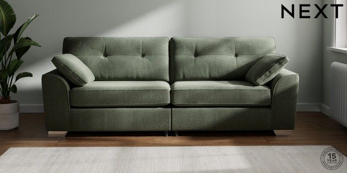 7.2.10 Buy Stamford Buttoned Back 4 Seater Sofa Chunky Texture Mid Forest Green Large Square Angle - Chrome Metal from the Next UK online shop Click here to use our accessible website