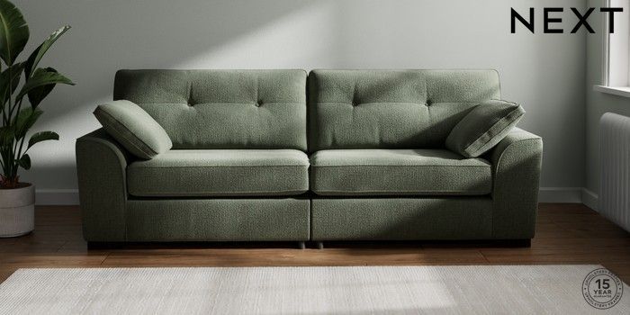 7.2.10 Buy Stamford Buttoned Back 4 Seater Sofa Chunky Texture Mid Forest Green Large Square Angle - Dark from the Next UK online shop Click here to use our accessible website
