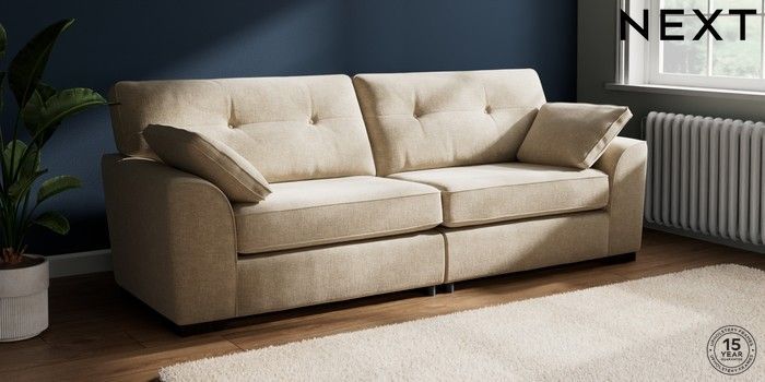 7.2.10 Buy Stamford Buttoned Back 4 Seater Sofa Chunky Weave Cream Large Square Angle - Dark from the Next UK online shop Click here to use our accessible website