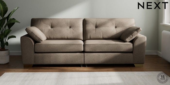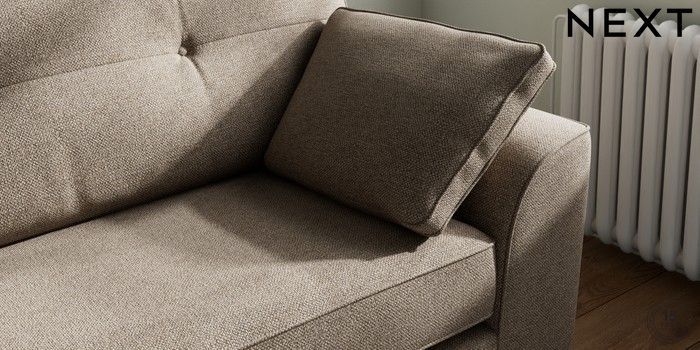 7.2.10 Buy Stamford Buttoned Back 4 Seater Sofa Chunky Weave Dark Natural Large Square Angle - Brushed Brass from the Next UK online shop Click here to use our accessible website