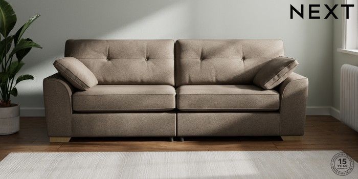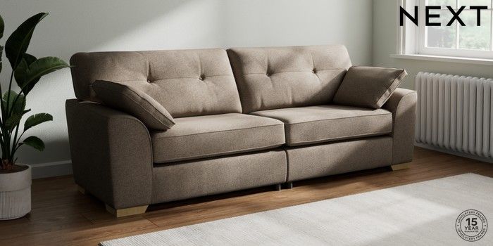 7.2.10 Buy Stamford Buttoned Back 4 Seater Sofa Chunky Weave Dark Natural Large Square Angle - Light from the Next UK online shop Click here to use our accessible website
