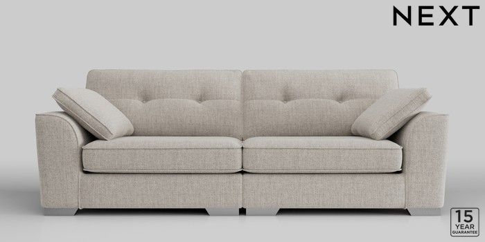 6.10.9 Buy Stamford Buttoned Back 4 Seater Sofa Chunky Weave Dove Grey Large Square Angle - Chrome Metal from the Next UK online shop Click here to use our accessible website