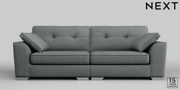 6.11.4 Buy Stamford Buttoned Back 4 Seater Sofa Chunky Weave Mid Grey Large Square Angle - Chrome Metal from the Next UK online shop Click here to use our accessible website