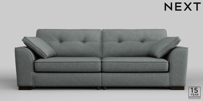 6.11.4 Buy Stamford Buttoned Back 4 Seater Sofa Chunky Weave Mid Grey Large Square Angle - Dark from the Next UK online shop Click here to use our accessible website