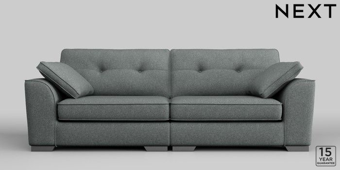 6.11.4 Buy Stamford Buttoned Back 4 Seater Sofa Chunky Weave Mid Grey Large Square Angle - Gunmetal from the Next UK online shop Click here to use our accessible website