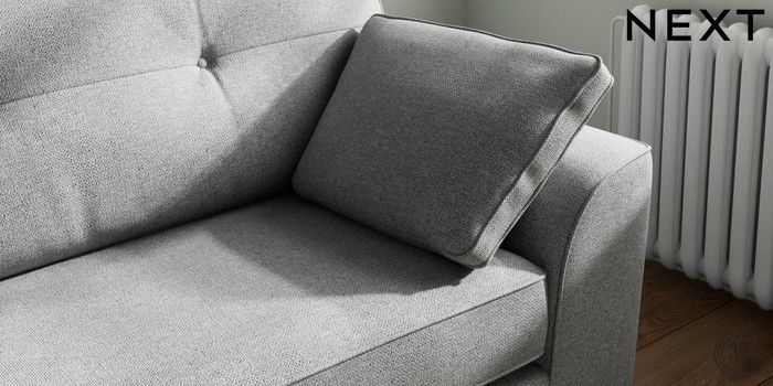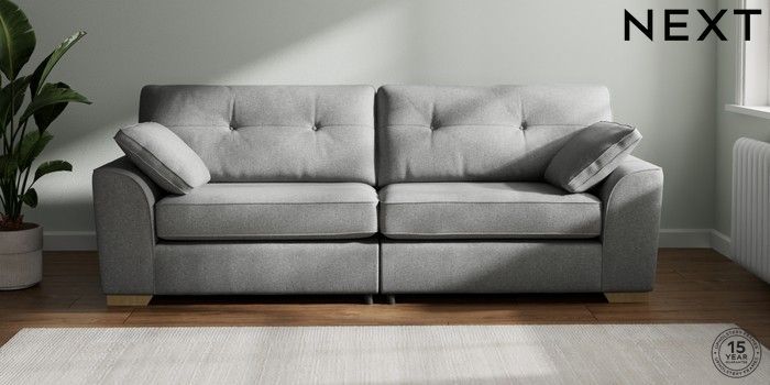 7.2.10 Buy Stamford Buttoned Back 4 Seater Sofa Chunky Weave Mid Grey Large Square Angle - Light from the Next UK online shop Click here to use our accessible website