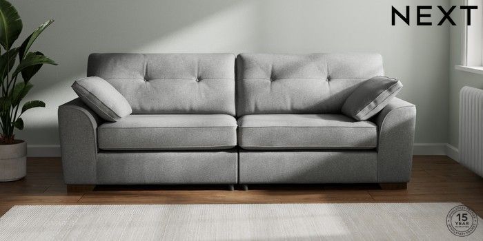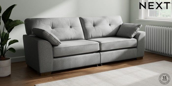 7.2.10 Buy Stamford Buttoned Back 4 Seater Sofa Chunky Weave Mid Grey Large Square Angle - Mid from the Next UK online shop Click here to use our accessible website