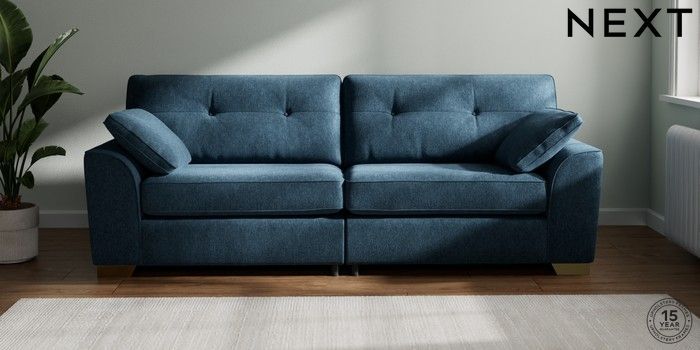 7.2.10 Buy Stamford Buttoned Back 4 Seater Sofa Cotswold Chenille Dark Blue Large Square Angle - Brushed Brass from the Next UK online shop Click here to use our accessible website