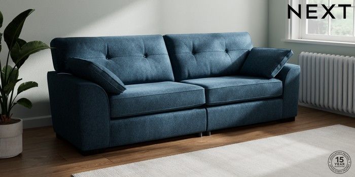 7.2.10 Buy Stamford Buttoned Back 4 Seater Sofa Cotswold Chenille Dark Blue Large Square Angle - Dark from the Next UK online shop Click here to use our accessible website