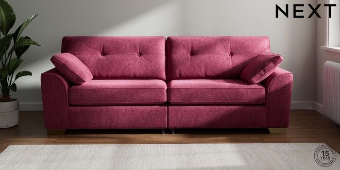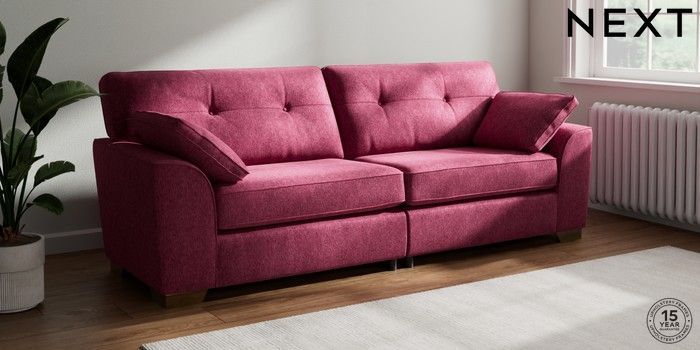 7.2.10 Buy Stamford Buttoned Back 4 Seater Sofa Cotswold Chenille Dark Raspberry Pink Large Square Angle - Brushed Brass from the Next UK online shop Click here to use our accessible website