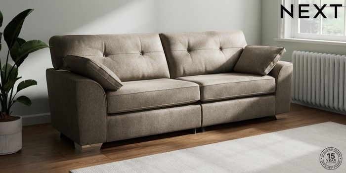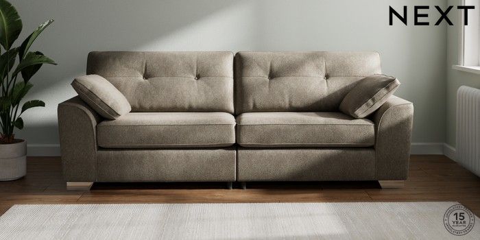 7.2.6 Buy Stamford Buttoned Back 4 Seater Sofa Cotswold Chenille Mid Mink Brown Large Square Angle - Chrome Metal from the Next UK online shop Click here to use our accessible website