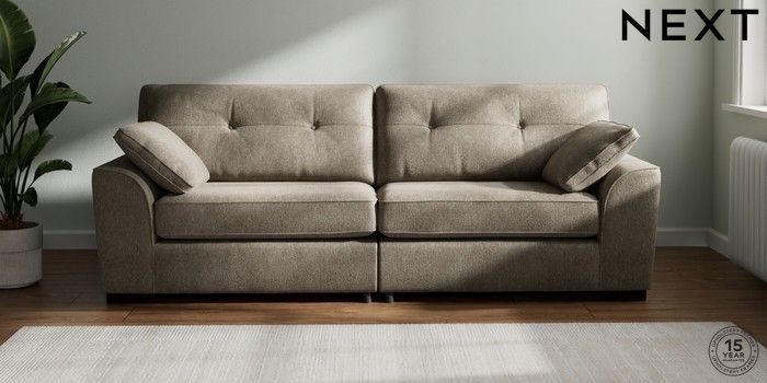6.12.1 Buy Stamford Buttoned Back 4 Seater Sofa Cotswold Chenille Mid Mink Brown Large Square Angle - Dark from the Next UK online shop Click here to use our accessible website