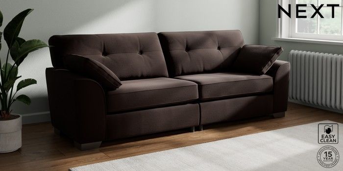7.2.10 Buy Stamford Buttoned Back 4 Seater Sofa Fine Chenille Easy Clean Chocolate Brown Large Square Angle - Gunmetal from the Next UK online shop Click here to use our accessible website