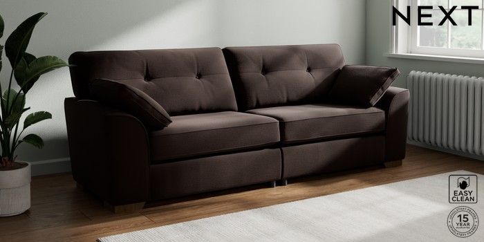 7.2.10 Buy Stamford Buttoned Back 4 Seater Sofa Fine Chenille Easy Clean Chocolate Brown Large Square Angle - Mid from the Next UK online shop Click here to use our accessible website
