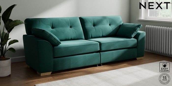 7.2.10 Buy Stamford Buttoned Back 4 Seater Sofa Fine Chenille Easy Clean Dark Juniper Green Large Square Angle - Light from the Next UK online shop Click here to use our accessible website
