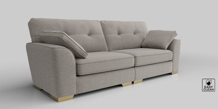 6.12.1 Buy Stamford Buttoned Back 4 Seater Sofa Fine Chenille Easy Clean Light Steel Grey Large Square Angle - Brushed Brass from the Next UK online shop Click here to use our accessible website