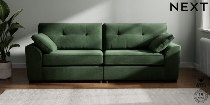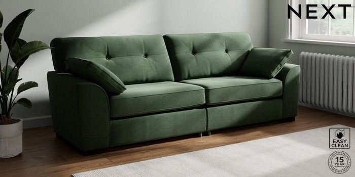 7.2.10 Buy Stamford Buttoned Back 4 Seater Sofa Fine Chenille Easy Clean Mid Khaki Green Large Square Angle - Dark from the Next UK online shop Click here to use our accessible website