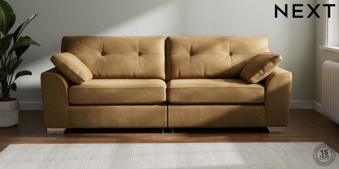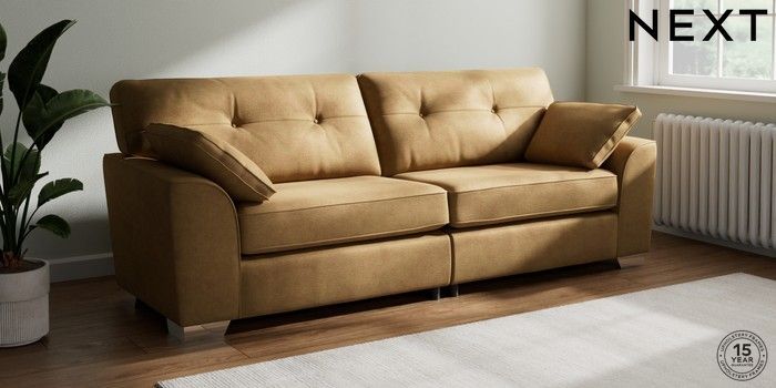 7.2.6 Buy Stamford Buttoned Back 4 Seater Sofa Luxe Chenille Honey Yellow Large Square Angle - Chrome Metal from the Next UK online shop Click here to use our accessible website