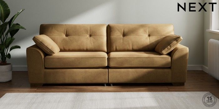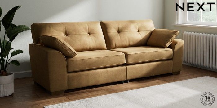 7.2.6 Buy Stamford Buttoned Back 4 Seater Sofa Luxe Chenille Honey Yellow Large Square Angle - Mid from the Next UK online shop Click here to use our accessible website