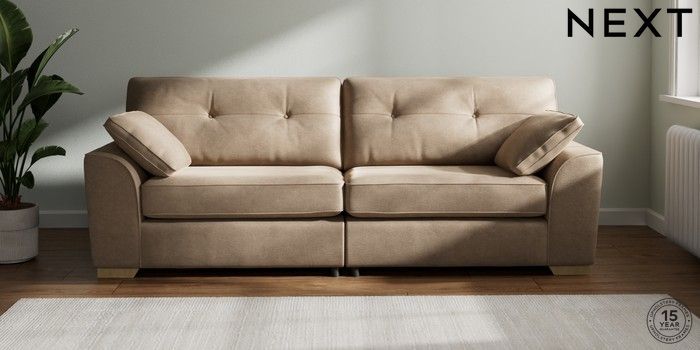 7.2.10 Buy Stamford Buttoned Back 4 Seater Sofa Luxe Chenille Mid Camel Beige Large Square Angle - Light from the Next UK online shop Click here to use our accessible website