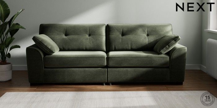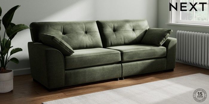 7.2.6 Buy Stamford Buttoned Back 4 Seater Sofa Luxe Chenille Mid Green Large Square Angle - Dark from the Next UK online shop Click here to use our accessible website