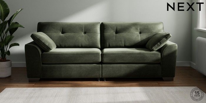 6.12.1 Buy Stamford Buttoned Back 4 Seater Sofa Luxe Chenille Mid Green Large Square Angle - Gunmetal from the Next UK online shop Click here to use our accessible website