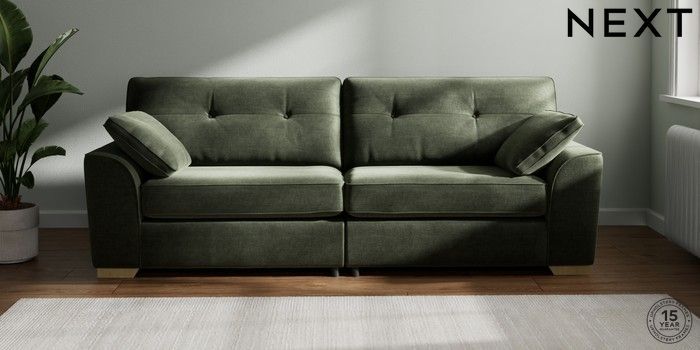 6.12.1 Buy Stamford Buttoned Back 4 Seater Sofa Luxe Chenille Mid Green Large Square Angle - Light from the Next UK online shop Click here to use our accessible website