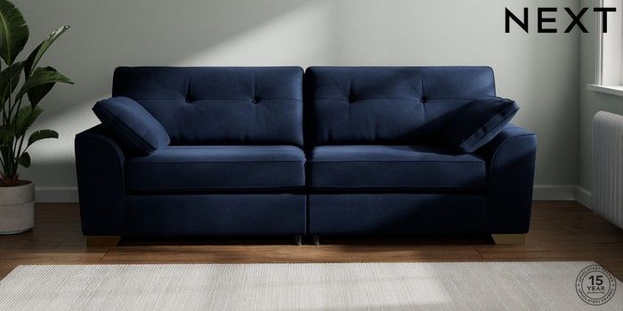 7.2.6 Buy Stamford Buttoned Back 4 Seater Sofa Luxe Chenille Navy Blue Large Square Angle - Brushed Brass from the Next UK online shop Click here to use our accessible website