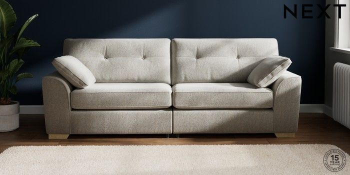 7.2.6 Buy Stamford Buttoned Back 4 Seater Sofa Multi Weave Light Blue Large Square Angle - Light from the Next UK online shop Click here to use our accessible website
