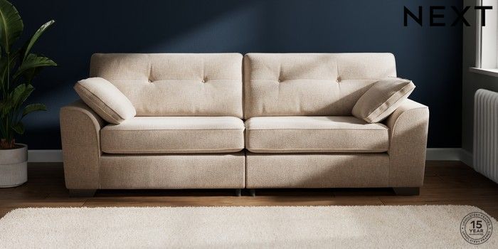 7.2.6 Buy Stamford Buttoned Back 4 Seater Sofa Multi Weave Mid Natural Large Square Angle - Gunmetal from the Next UK online shop Click here to use our accessible website