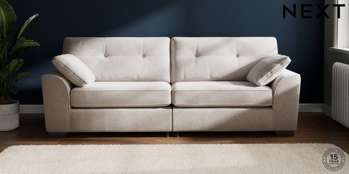 7.2.6 Buy Stamford Buttoned Back 4 Seater Sofa Multi Weave Oyster Large Square Angle - Gunmetal from the Next UK online shop Click here to use our accessible website