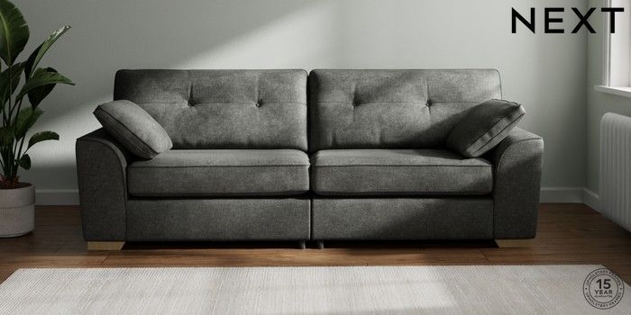 7.2.10 Buy Stamford Buttoned Back 4 Seater Sofa Plush Chenille Dark Grey Large Square Angle - Light from the Next UK online shop Click here to use our accessible website