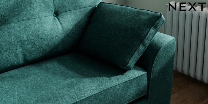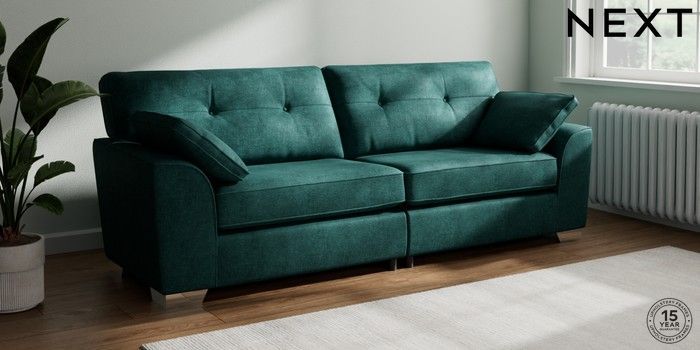 7.3.1 Buy Stamford Buttoned Back 4 Seater Sofa Plush Chenille Dark Teal Green Large Square Angle - Chrome Metal from the Next UK online shop Click here to use our accessible website