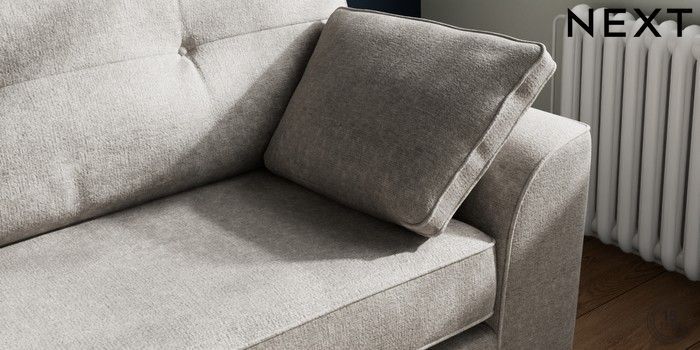 7.2.10 Buy Stamford Buttoned Back 4 Seater Sofa Plush Chenille Light Grey Large Square Angle - Chrome Metal from the Next UK online shop Click here to use our accessible website