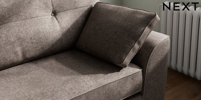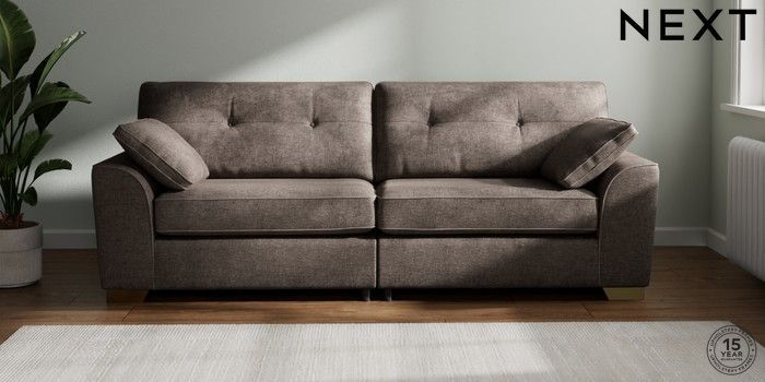 7.2.10 Buy Stamford Buttoned Back 4 Seater Sofa Plush Chenille Mink Brown Large Square Angle - Brushed Brass from the Next UK online shop Click here to use our accessible website