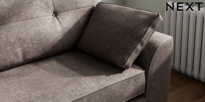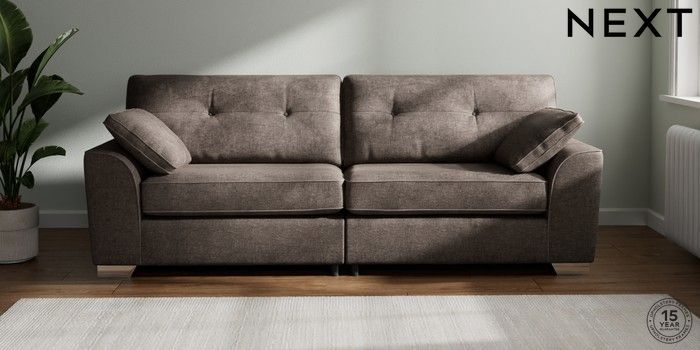 7.2.10 Buy Stamford Buttoned Back 4 Seater Sofa Plush Chenille Mink Brown Large Square Angle - Chrome Metal from the Next UK online shop Click here to use our accessible website