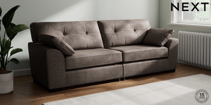 7.2.10 Buy Stamford Buttoned Back 4 Seater Sofa Plush Chenille Mink Brown Large Square Angle - Dark from the Next UK online shop Click here to use our accessible website