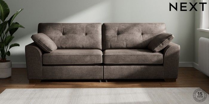 7.2.10 Buy Stamford Buttoned Back 4 Seater Sofa Plush Chenille Mink Brown Large Square Angle - Mid from the Next UK online shop Click here to use our accessible website