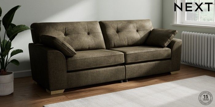 7.2.10 Buy Stamford Buttoned Back 4 Seater Sofa Plush Chenille Moss Green Large Square Angle - Light from the Next UK online shop Click here to use our accessible website