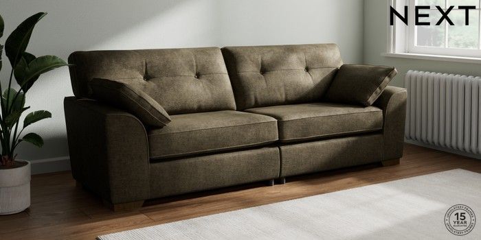 7.2.10 Buy Stamford Buttoned Back 4 Seater Sofa Plush Chenille Moss Green Large Square Angle - Mid from the Next UK online shop Click here to use our accessible website