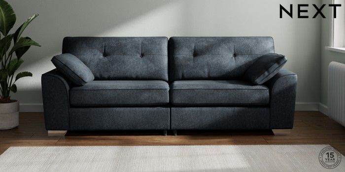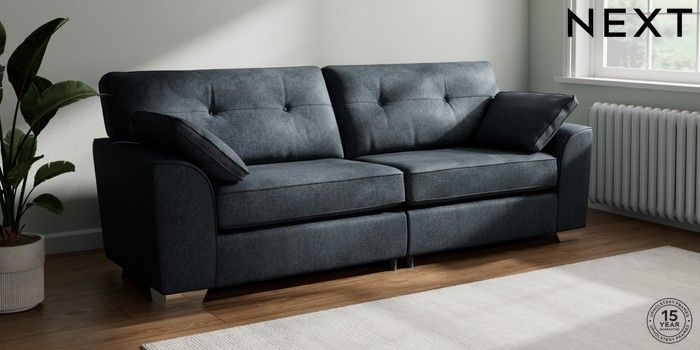 7.2.10 Buy Stamford Buttoned Back 4 Seater Sofa Plush Chenille Slate Blue Large Square Angle - Chrome Metal from the Next UK online shop Click here to use our accessible website