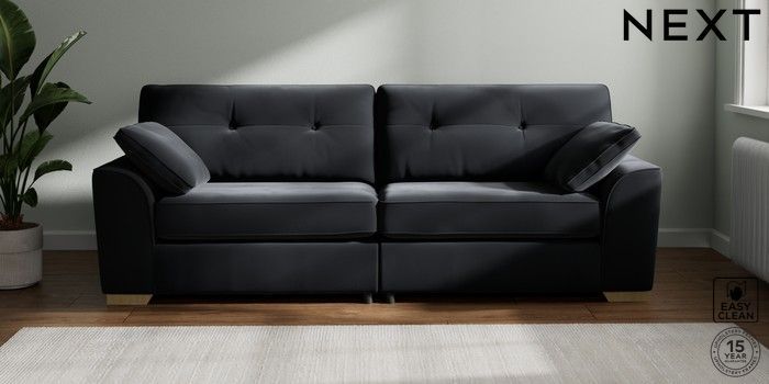 7.2.10 Buy Stamford Buttoned Back 4 Seater Sofa Plush Velvet Easy Clean Charcoal Grey Large Square Angle - Light from the Next UK online shop Click here to use our accessible website